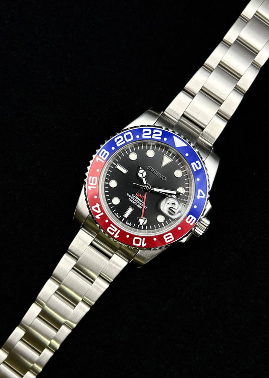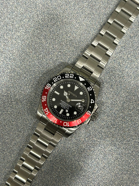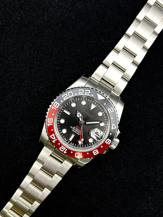 Submariner style, Black/Red "Coke" GMT Bezel, Sapphire Crystal, 40mm