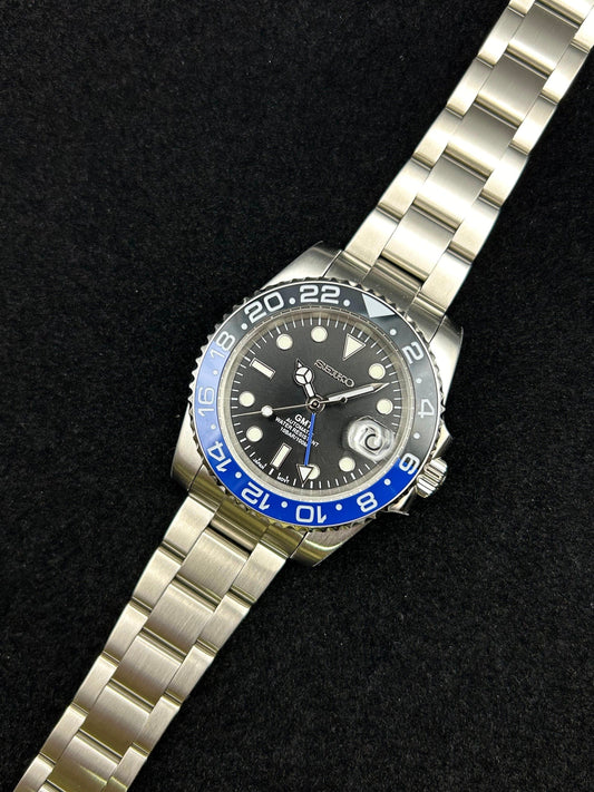 4-hand NH34 GMT, Ceramic Blue/Black "Batman / Batgirl" Bezel, Sapphire Crystal, 40mm, lume dial/hands