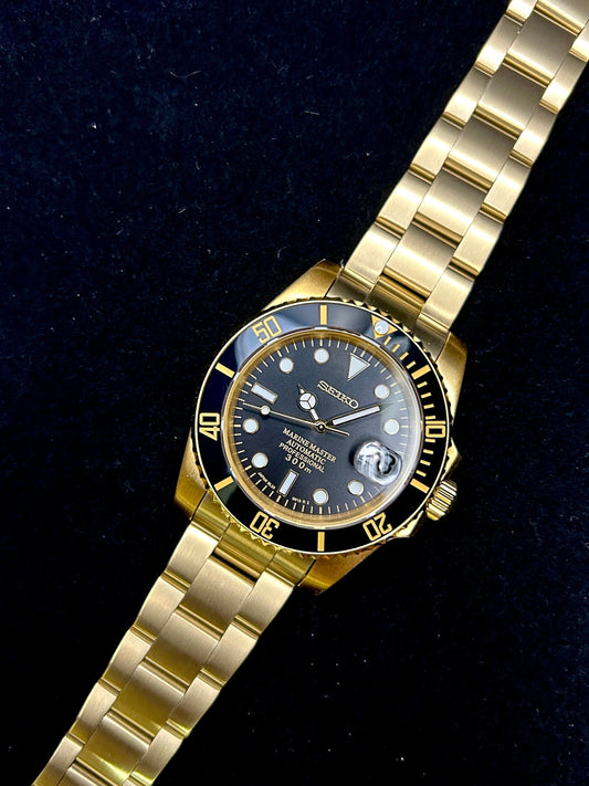 Gold Submariner style, Ceramic Diver Bezel, Sapphire Crystal, 40mm, lume dial/hands